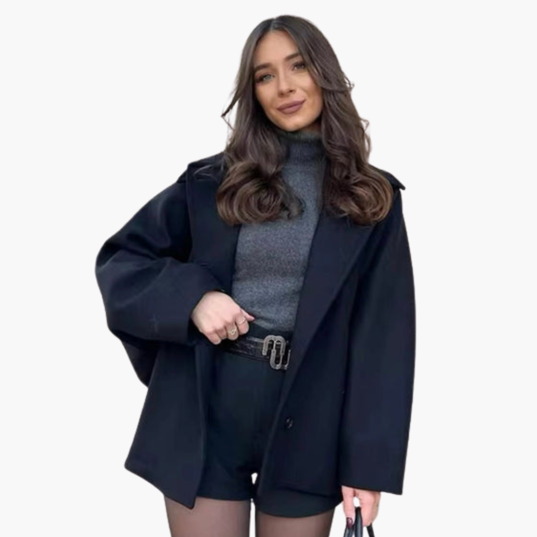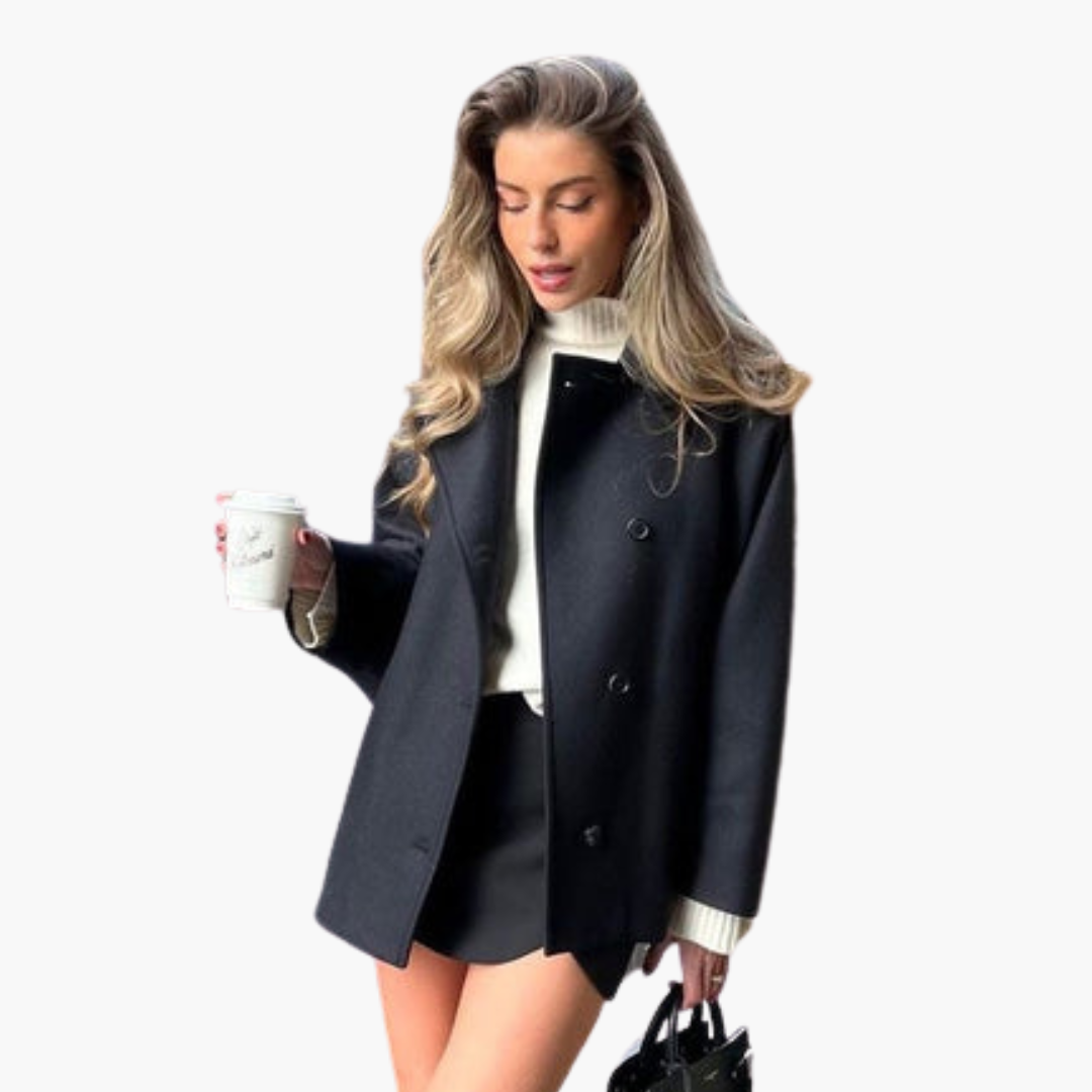 Women's straight-cut jacket with a wide collar and buttons at the front.
