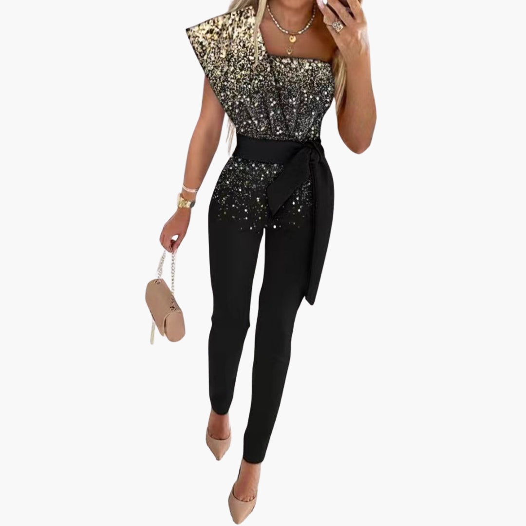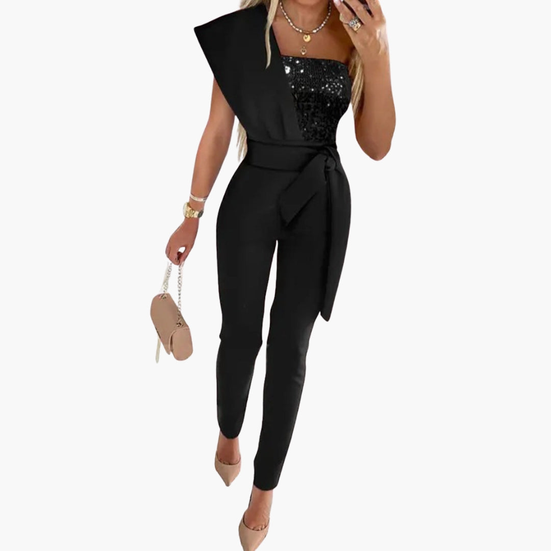 Women’s One-Shoulder Jumpsuit with Glittery Surface