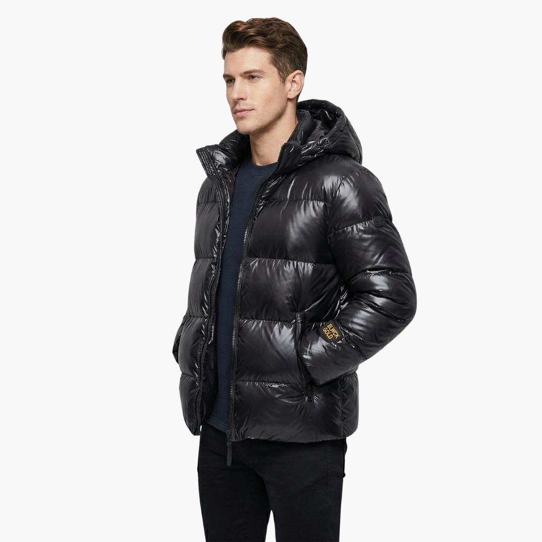 Casaco de Penas Masculino com Capuz e Fecho de Correr