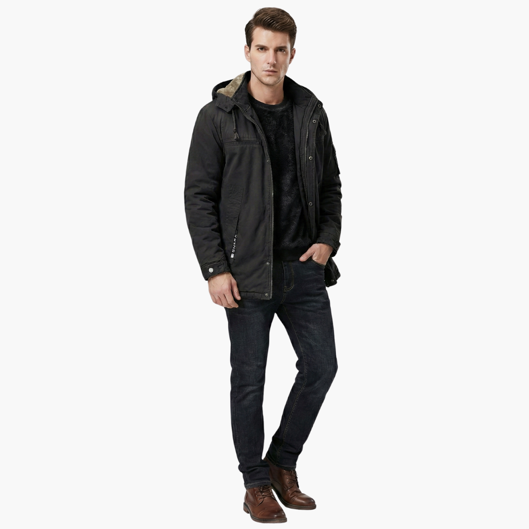 Casaco de Inverno Masculino com Capuz e Bolsos com Fecho éclair