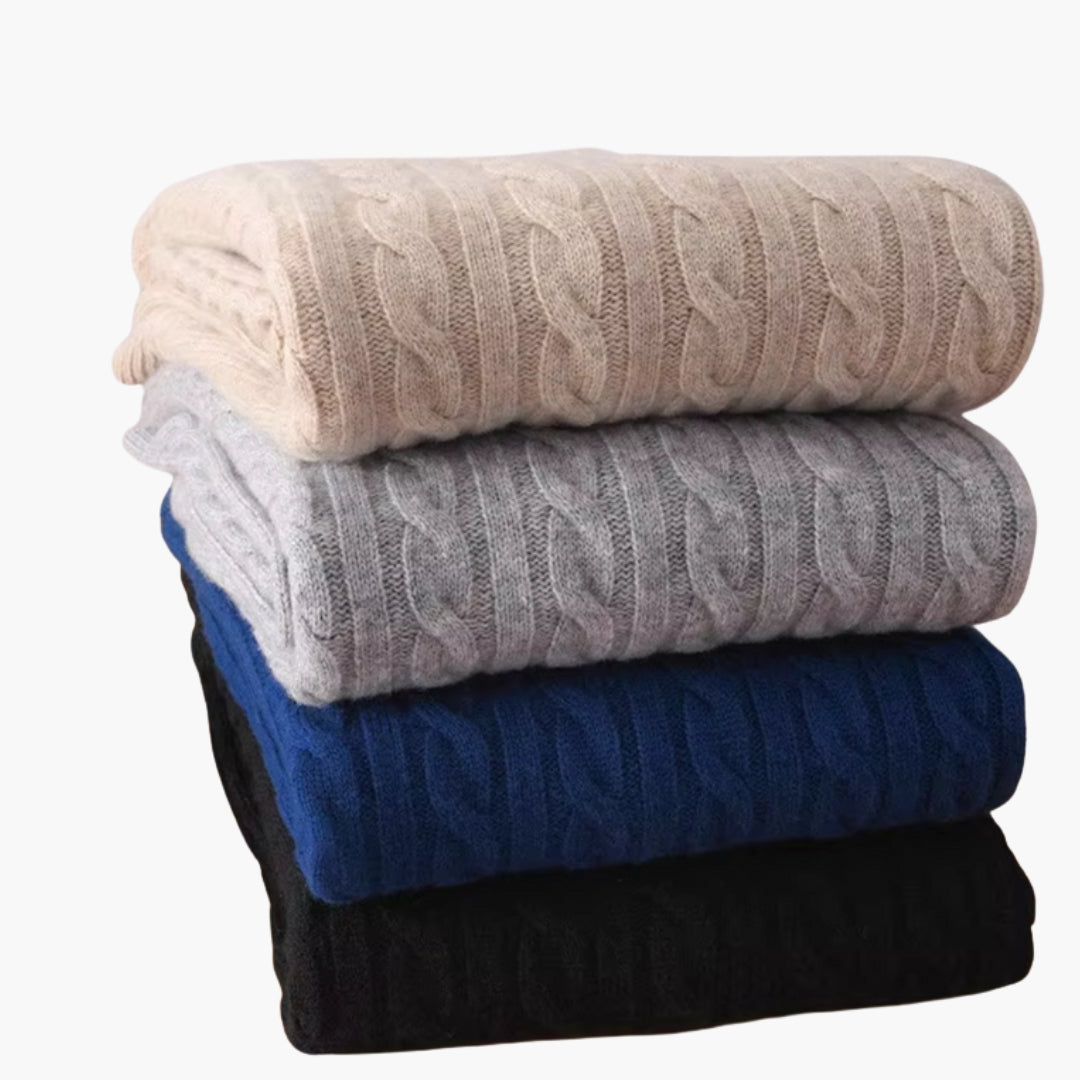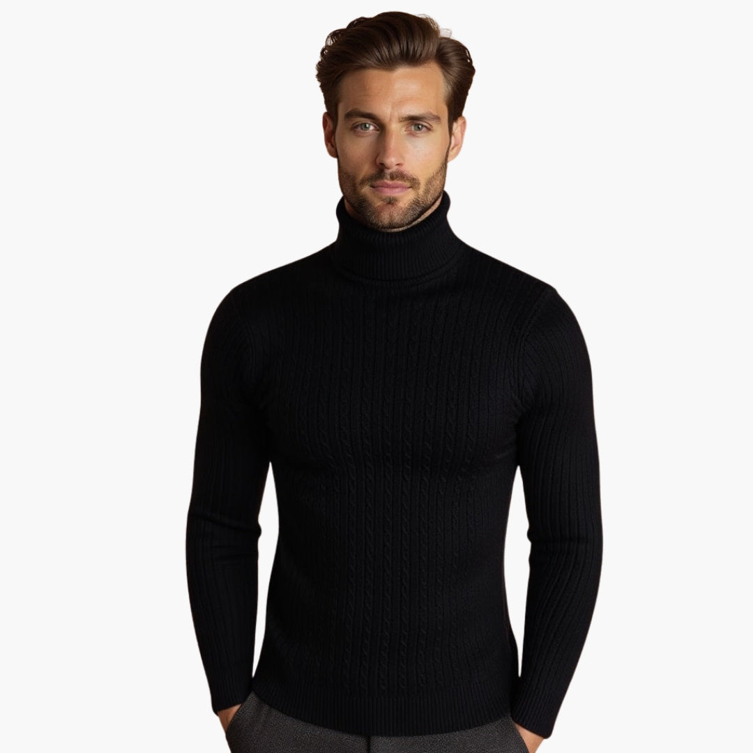 Camisola de gola alta para homem com padrão torcido e bainha canelada