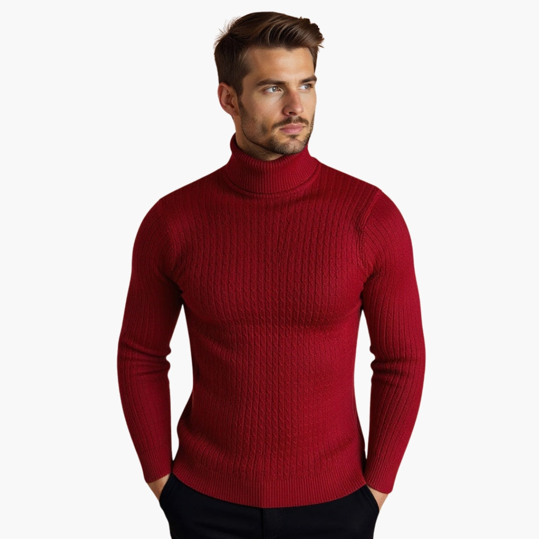 Camisola de Gola Alta Ajustada para Homem em Malha Elástica