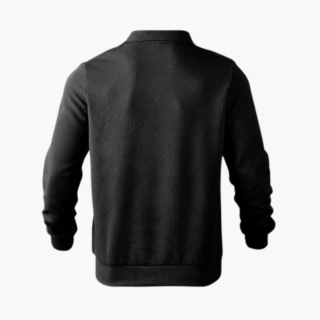 Camisola de Homem com Meio Zíper, Padrão Texturizado e Bordas Caneladas