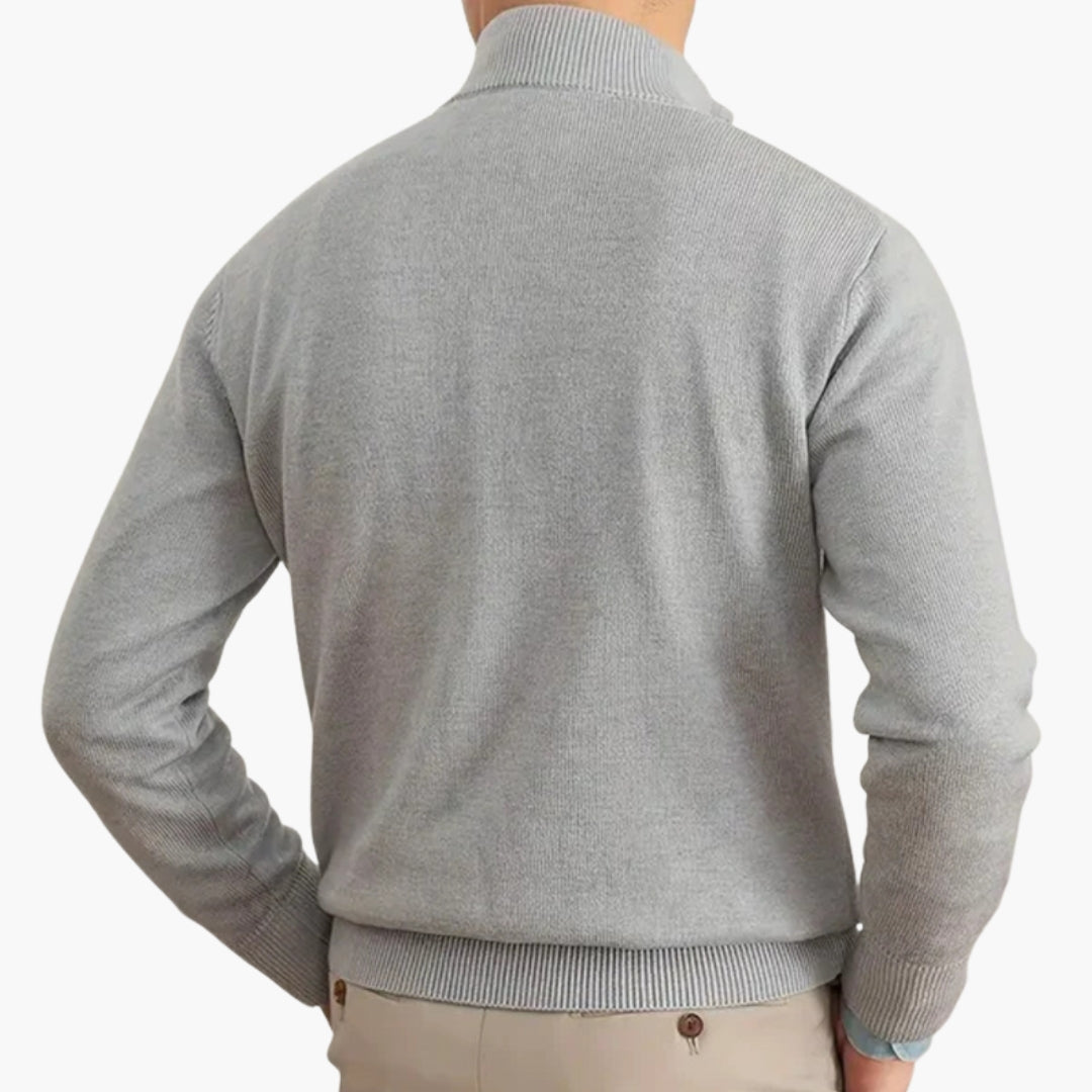 Camisola de Malha Masculina com Meio Zíper e Punhos Canelados