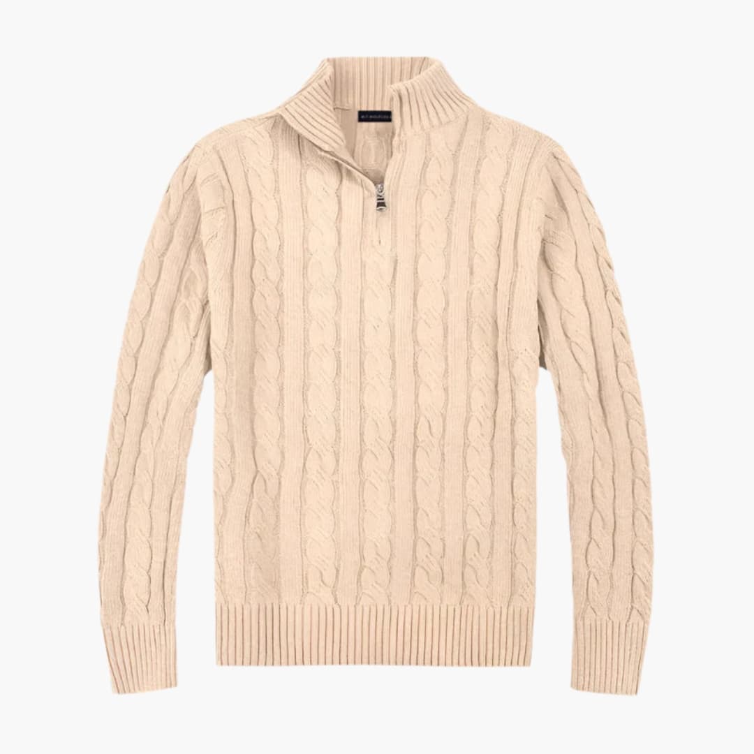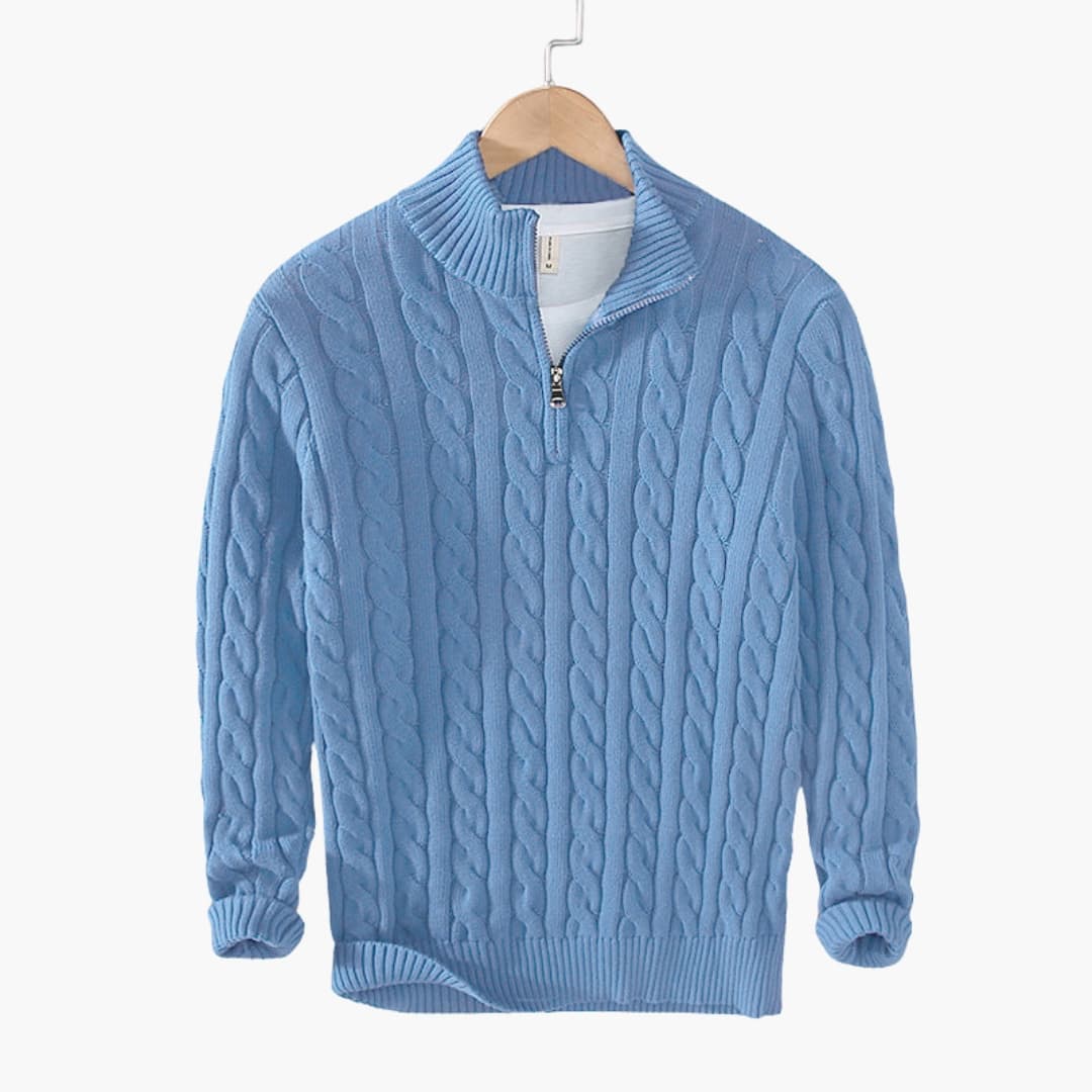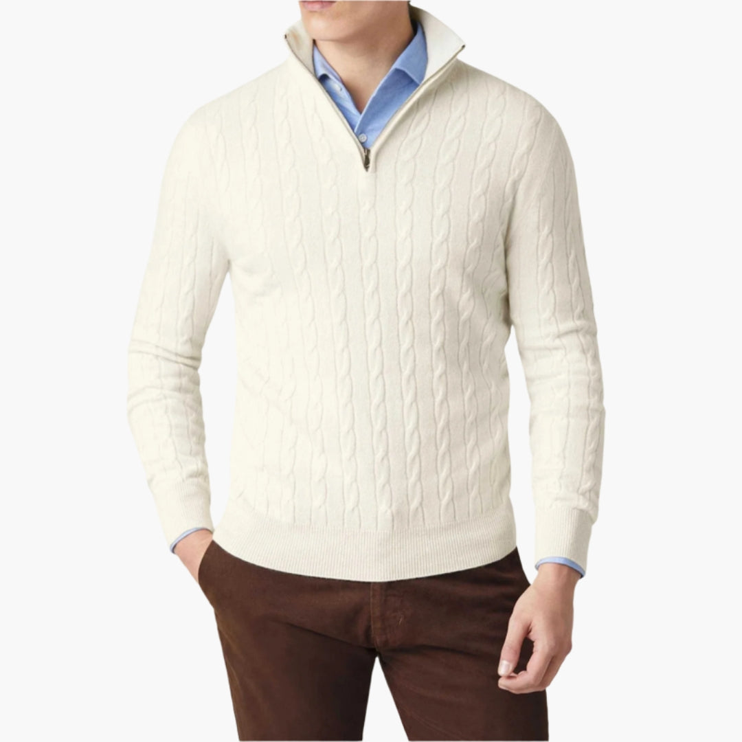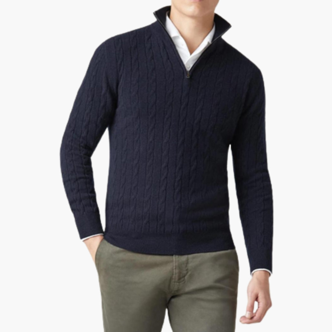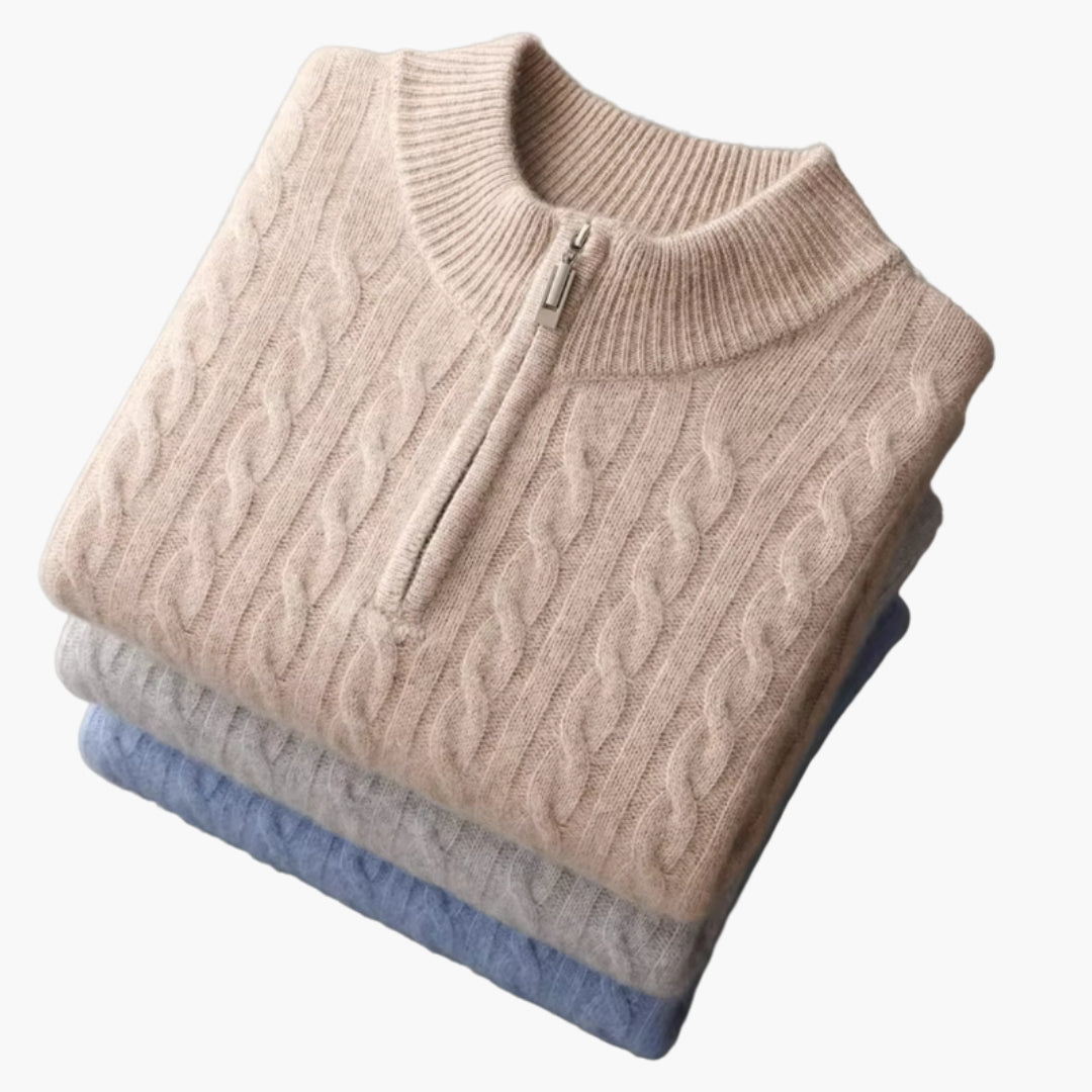 Camisola de malha torcida para homem com gola de meio fecho éclair