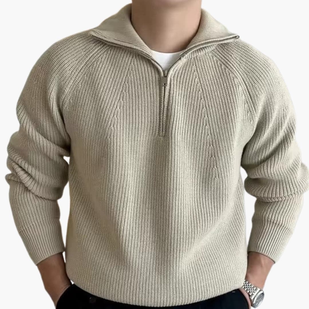 Camisola de Malha Masculina com Meio Zíper e Punhos Canelados